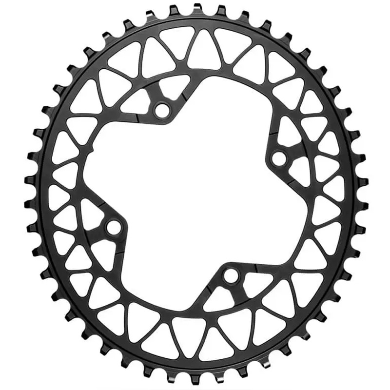 Size (Mass +/-1g): 42T (81g), 44T (88g), 46T (94g) comes with 4 AL bolts (weight given for chainring only)