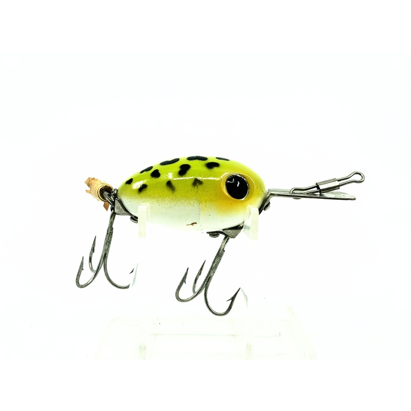Arbogast Arbo-Gaster, Frog/White Belly Color. Rare side stencil on this Arbo-Gaster. This lure is 3" long including lip. Used with some minor wear and missing the skirt but in overall good condition, see photos. Fish or collect.See our entire catalog of vi
