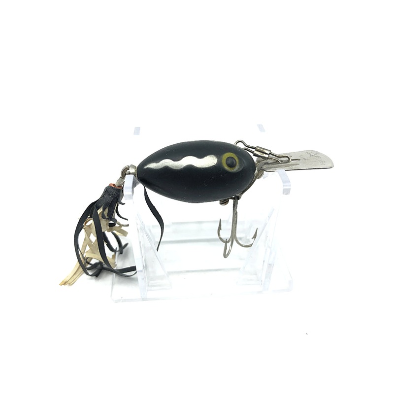 Arbogast Arbo-gaster Lure in Black Wave Color. About 1 1/2″ long body not including lip. Classic vintage Fred Arbogast fishing lure in a fantastic and tougher to find color. Lure is fresh from a vintage tackle box. Has some minor wear and waxing but overall good condition. See photos. Great lure to fish or collect.