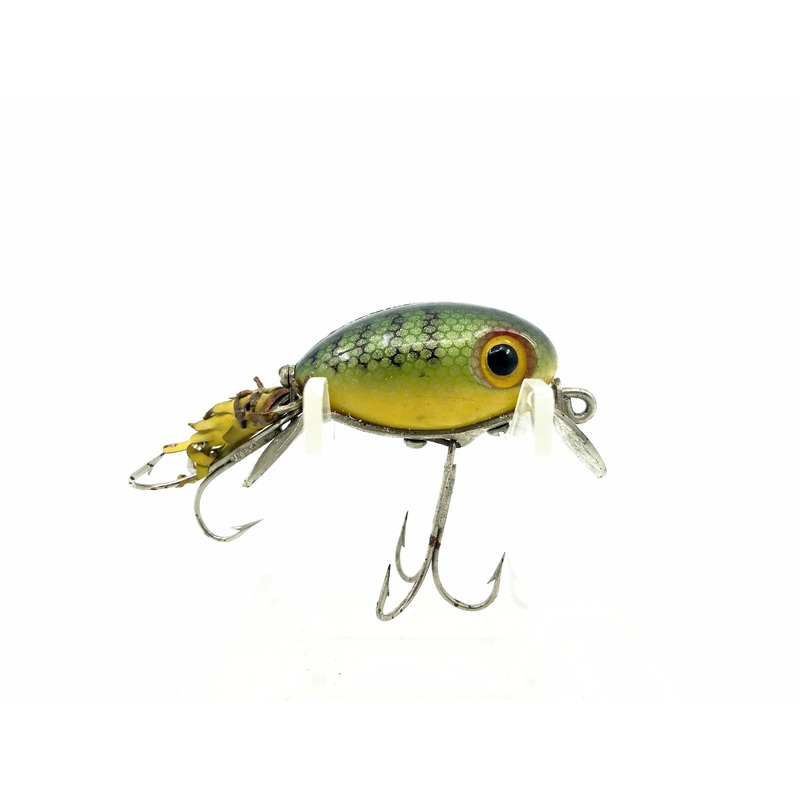 Arbogast Hula Dancer, P Perch Color. Classic Arbogast lure here at about 2" long total. Used with wear and minor marks but still overall in ok condition, see photos. Still in good enough condition to fish or display!See all of ourArbogast lures here.