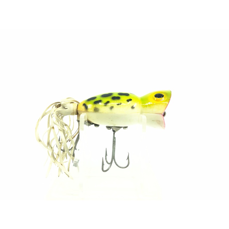 Arbogast Hula Popper 5/8oz, Frog/White Belly Color. Main body is about 2 1/4″ long. Lure is used but appears to have never been fished and is in great condition.Lureis new on card. Fish or collect. See photos.
