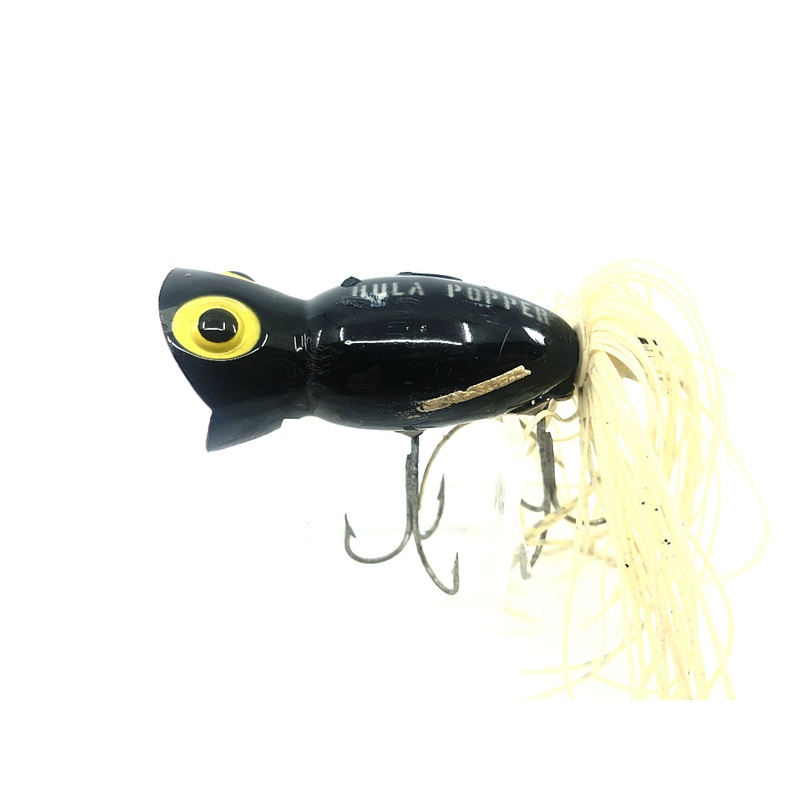 Arbogast Hula Popper Black Color. About 2 1/2" body. Used but in good condition with some plastic damage on the back of it, see photos. Great for fishing.See all of ourArbogast lures here.