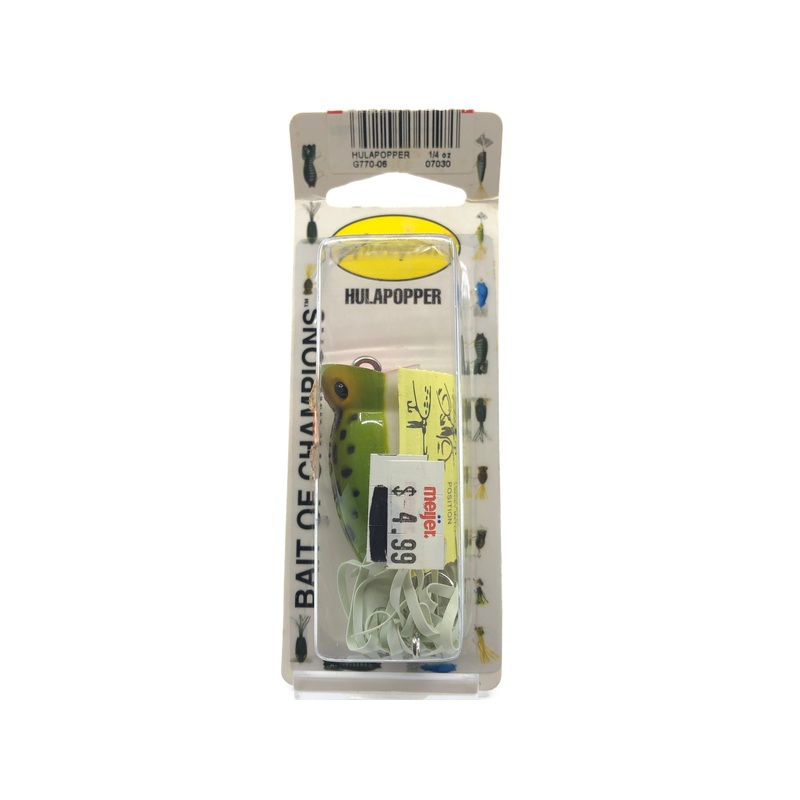 Arbogast Hula Popper G770-06 Frog on Card Old Stock. At about 1 3/4" long this lure comes from a lot of old stock. Lure is an early 2000s Hula popper. Great to fish or collect. See photos.See all of ourArbogast lures here.