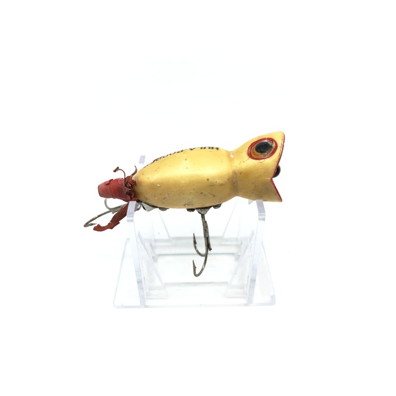Arbogast Hula Popper Luminous Color. Vintage Hula Popper fresh from an antique tackle box. Has wear as shown in the photos but still ok to fish or display. Classic Arbogast bait.See our entire catalog of vintage and premium Arbogast lures.