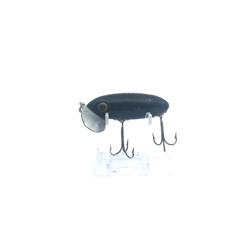 Arbogast Jitterbug Black Color. About 3″ long. Used with some wear. Still has some life. Fish or display, see photos.