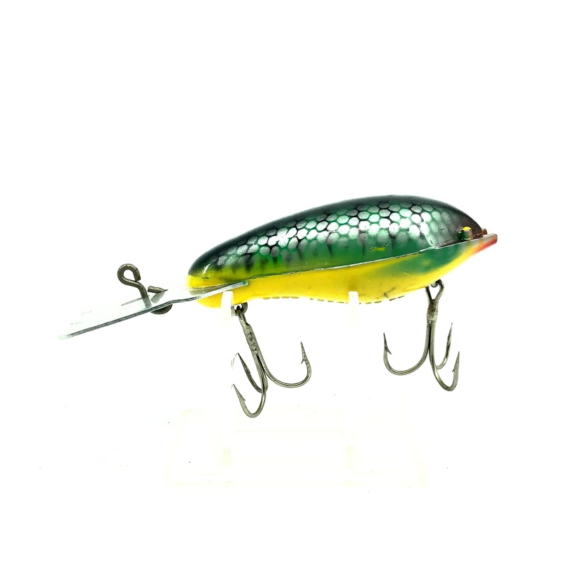 Arbogast Mud Bug Series 24, #05 Perch Color. At about 4 1/4" long including the lip and weighs 3/4oz.This bait is used but appears to have never been fished before and is in overall great condition.This lure would still look great in your collection or tac