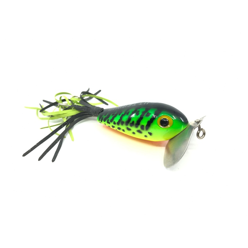 Arbogast Weedless Jitterbug Fire Tiger Color. About a 2 1/4" body not including lip or hook. Used but in great condition, appears unfished. See photos. Great discontinued lure that is tough to find in a great color. Fish or collect.See all of ourArbogast l