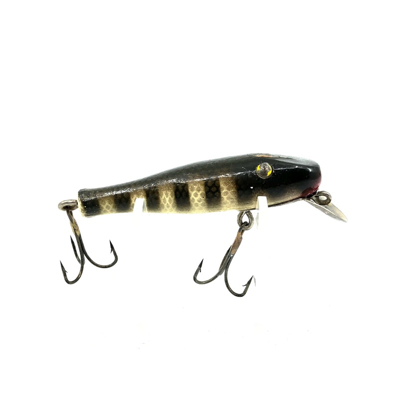 Arnold Pikie, Pike Color. Uncommon vintage lure here. About 2 3/4" long. Lure is used with some minor wear, a little paint off one tack eye and a small sliver of paint off the head above that eye, but in overall good condition, see photos. Fish or collect.