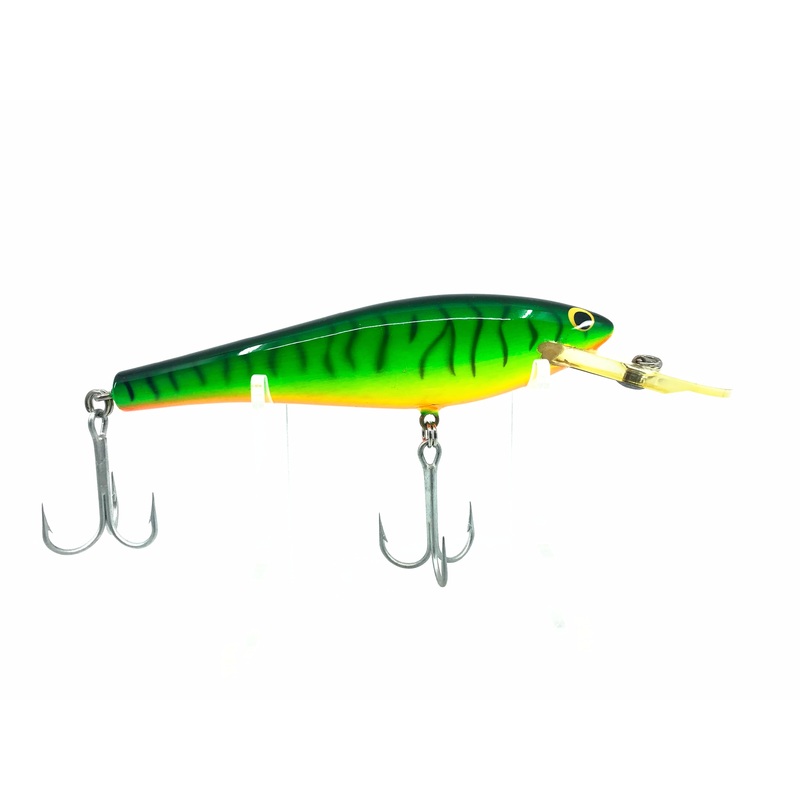 Bagley DB06, H69T Hot Tiger Color, Winter Haven Bait. Winter Haven Bagley here. Lure is about 6 1/2″ long including lip. Wooden lure. Lure is used but in very good overall condition. See photos. Tough to find these anymore in any condition.