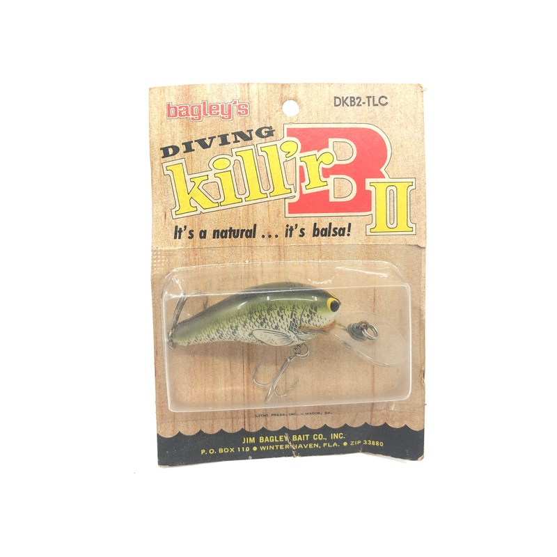 Bagley Diving Kill'r B2 DKB2-TLC True Life Crappie Color New on Card Old Stock. Card has some wear as shown in photos. Lure is new on card. Would make a great display piece or addition to your collection. Fish or collect a classic Bagley lure.This is a Win