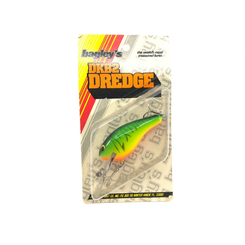 Bagley DKB2 DREDGE DKB2D-H69T Hot Tiger Color New on Card Old Stock Florida Bait. New on Card Old Stock. Card in pretty decent shape with some minor wear as shown in photos. Lure is new on card. Would make a great display piece or addition to your collection. Fish or collect a classic Bagley lure.This is a Winter Haven, Florida bait.