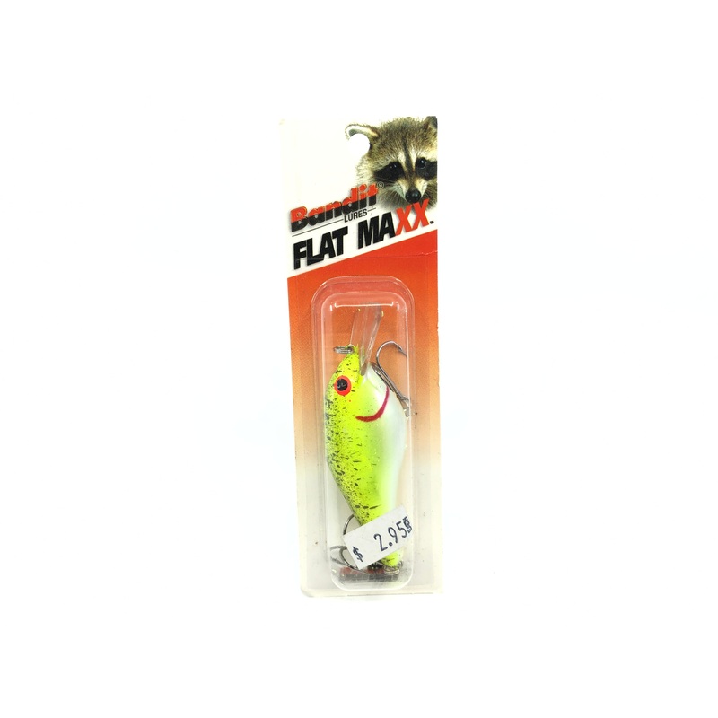 Bandit Flat Maxx Shallow Avocado Splatter Color New on Card FMS1B06. This is new old stock of adiscontinued color. Grab these while you can! Great bass lure!The Bandit Flat Maxx Shallow is a bigger crankbait with flat sides, and produces a more subtle swim