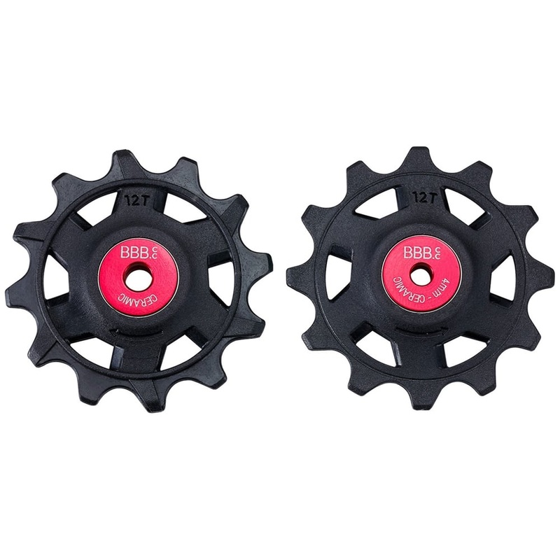 12 x 12T Ceramic derailleur pulleys.High-performance composite material from EMS Swiss with 40% glass-fibre blend.Sealed bearing with aluminium cover for optimal durability.Specially lubricated with ceramic oil for lower resistance.Compatible with 12 speed