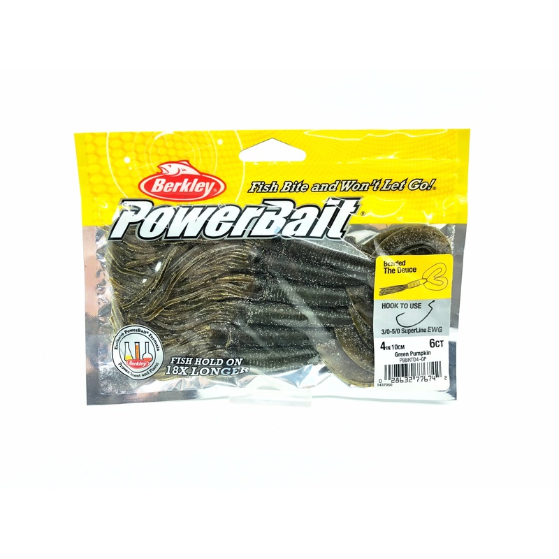 Berkley Bearded The Deuce4", Green Pumpkin Color. Great 6 pack here in a discontinued bait. Pack is unopened and is in great condition. All the baits are new in package, see photos. Save money and buy this old stock item.Berkley Bearded The DeuceTip a foot