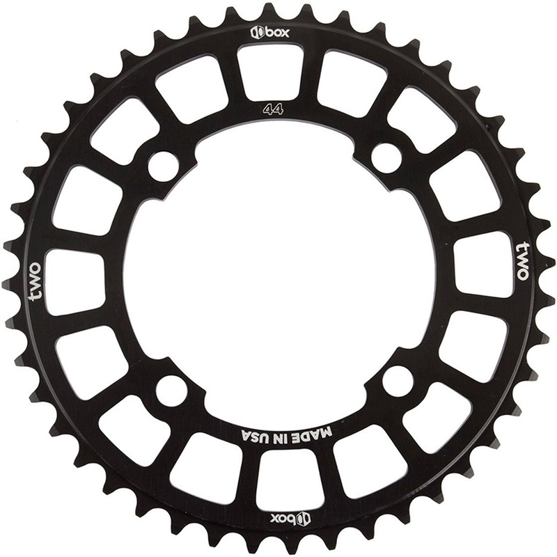 Made in the US from 6061-T6 aluminium alloy, Box Two Chainrings are round and true. They fit 104 BCD four-bolt cranks and are available in black anodised with laser-etched graphics from 38 to 45-teeth.Specifications:Material: 6061-T6 AluminiumProcess: Extr
