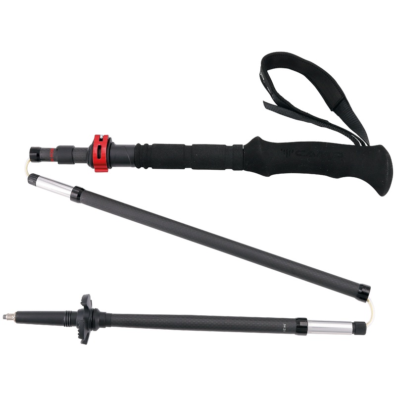 Versatile trekking poles that feature the lightweight rigidity benefits of carbon fiber, the strength of aluminum alloy at the joints, tight packability from the foldable design, and adjustability from 110 to 130 cm with the fast and secure Alu Fast Lock a