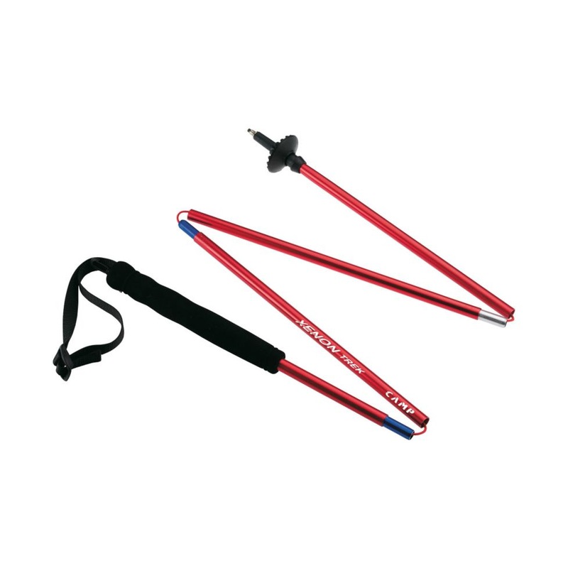 The Camp Xenon Trek Trekking Pole is the beefed-up version of the hyperlight Xenon poles, which provides greater durability without making great compromises in weight or size. Long padded handles with adjustable nylon leashes ensure comfort. 55mm removable baskets and Tungsten tips provide performance and durability.A welcome addition for excursions where poles might be useful, but additional weight might be a setback. The hyperlight aluminum alloy Xenon poles break down to an extremely compact size and assemble quickly with the pull of a Dyneema cord.