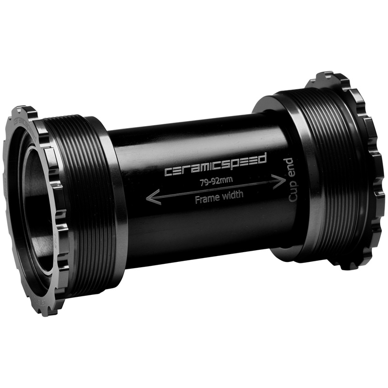 The cups have CeramicSpeed bearings pressed in, and then are threaded into the bb. There are two bearing options. The Standard Bearing has CeramicSpeed Balls and hardened-steel races. The Coated Bearing has the same balls running on a 3-micron thick coating placed on top of those hardened-steel races, which makes them faster and more durable.