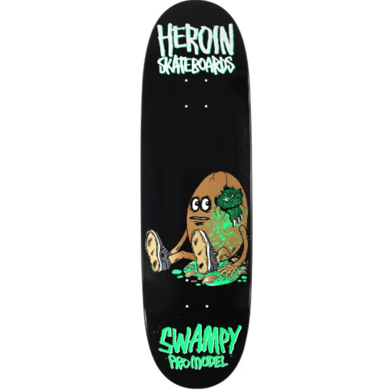 Deck width: 9.25"Deck length: 32"Wheelbase: 14.25"Construction: 7 Ply North American Hard Rock MapleRazor Edge constructionSwampy Pro ModelRazorEdge Construction -An unfinished sharper edge on the top ply of the deck gives you more defined boardfeel and sl