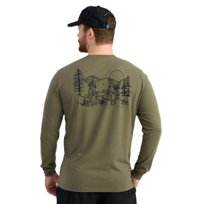 Experience top-of-the-line comfort with the Huk Men’s Lodge Long Sleeved Pocket Tee. Crafted with a crew neckline, long sleeves, and a high-quality cotton-poly mix, this tee showcases a stylish graphic print featuring a backcountry lodge experience on horseback.