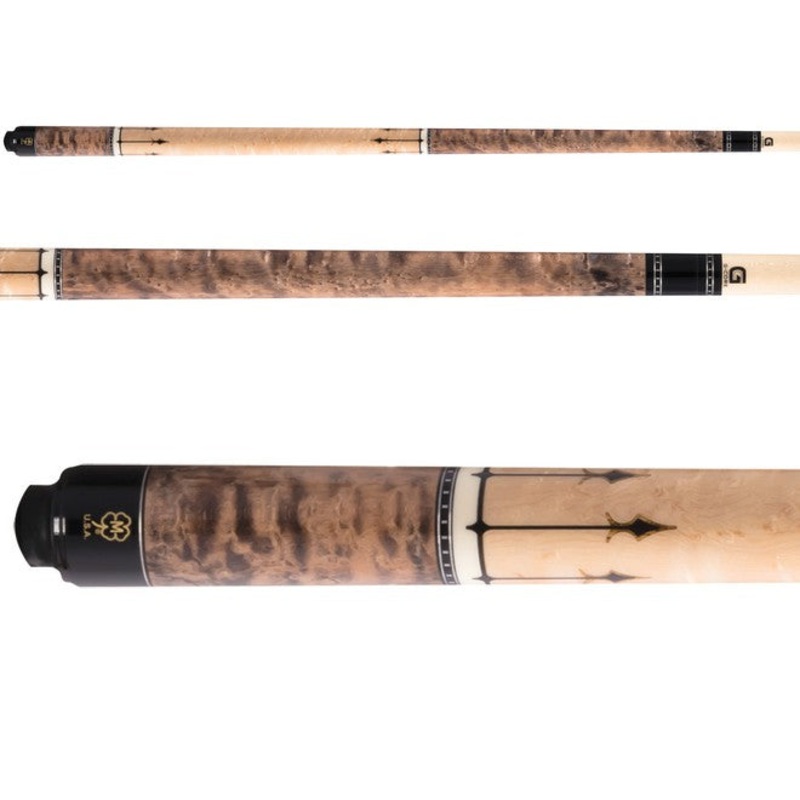 The McDermott G415 is a wrapless cue that features a Grey & Natural Walnut double-wash stained Birdseye Maple forearm and sleeve. The handle is constructed using Birdseye maple and sports 12 black urethane & Bocote points. McDermott cues come with a lifeti