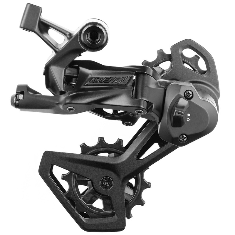 How do you improve on a classic? ADVENT X V2 is the same great derailleur you know and love, but with an all-new cage design that improves performance under the hardest riding. The new cage features a shorter overall length and improved pulley position for better chain wrap, especially in the smaller cogs. With more tooth engagement on the pulleys, shifting speed and chain retention improve. More tooth engagement on the cassette means a longer life, especially on the small sprockets. The linkage mechanics of the derailleur have also been updated to a more linear spring response, resulting in lower shifting force. Less tension on the cable makes it easier to engage a shift, resulting in a better feel and marginal gains in shifting speed. If you liked the original ADVENT X but wanted a version with lighter action that performs better under the hardest riding, Version 2 is for you.