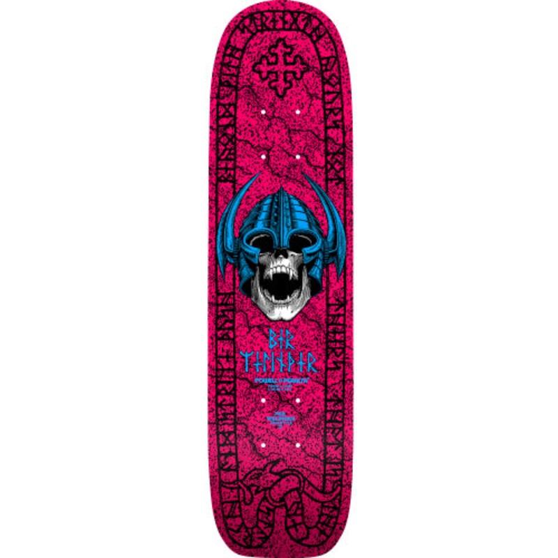 Powell-Peralta re-issue decks are close reproductions of their 1980s counterparts, featuring the original Pro graphics and shape, top graphic logo and concave. They are manufactured in our Santa Barbara skateboard factory, which is still directed by a few of the same craftsmen that made them originally.