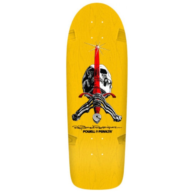 Deck width: 10"Deck length: 30.0"Deck nose: 3.125"Deck tail: 6.63"Deck wheelbase: 16.0"Deck shape: 166Deck concave: SP3Long 4 - 2.5" old school truck hole patternAbout the Skull & Sword Artwork:The Rodriguez "Skull & Sword" deck was the first pro signature