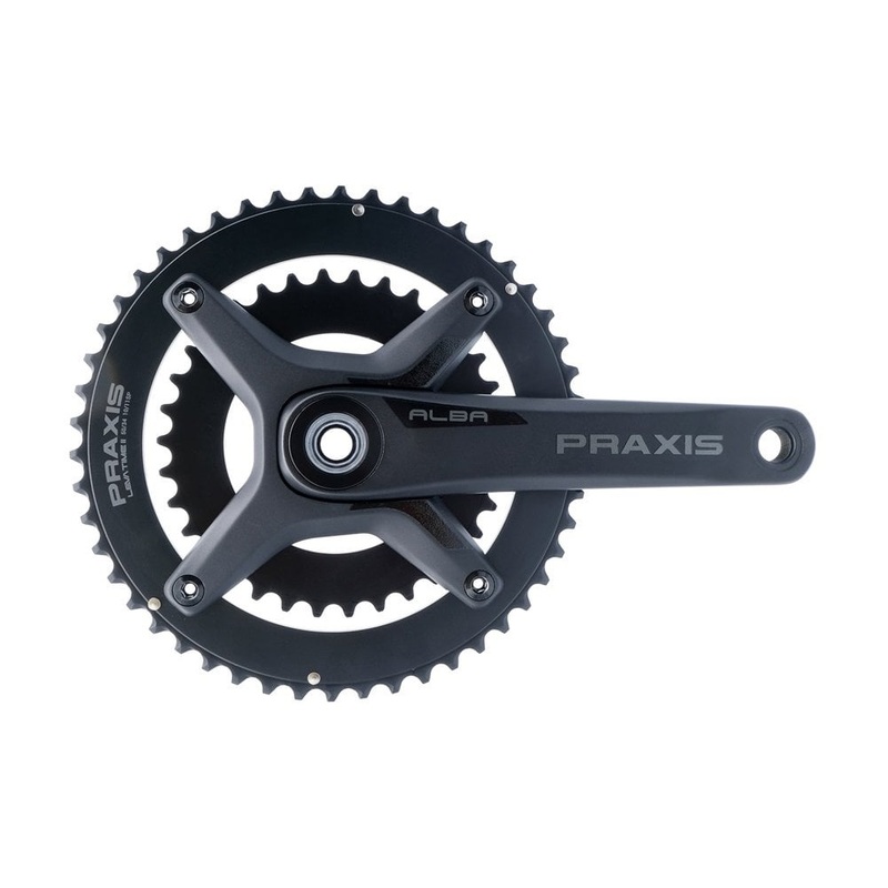 Deep in the hills of Santa Cruz, cyclists are brought to their knees by a nasty, four mile, 1800 ft. climb named Alba Road. This respected ascent was the inspiration for our Alba road crank. With its shapely forged-alloy arms connected to our M30 alloy spindle, choice of smooth-shifting Praxis Works cold forged chainrings and M30 bottom brackets (required and sold separately), the Alba is ready for anything you pedal up against. The Alba M30 road bike crank can be installed in a BSA, BB86, 386EVO, BB30, PF30, T47, BBRight or older Specialized OSBB road frame.
