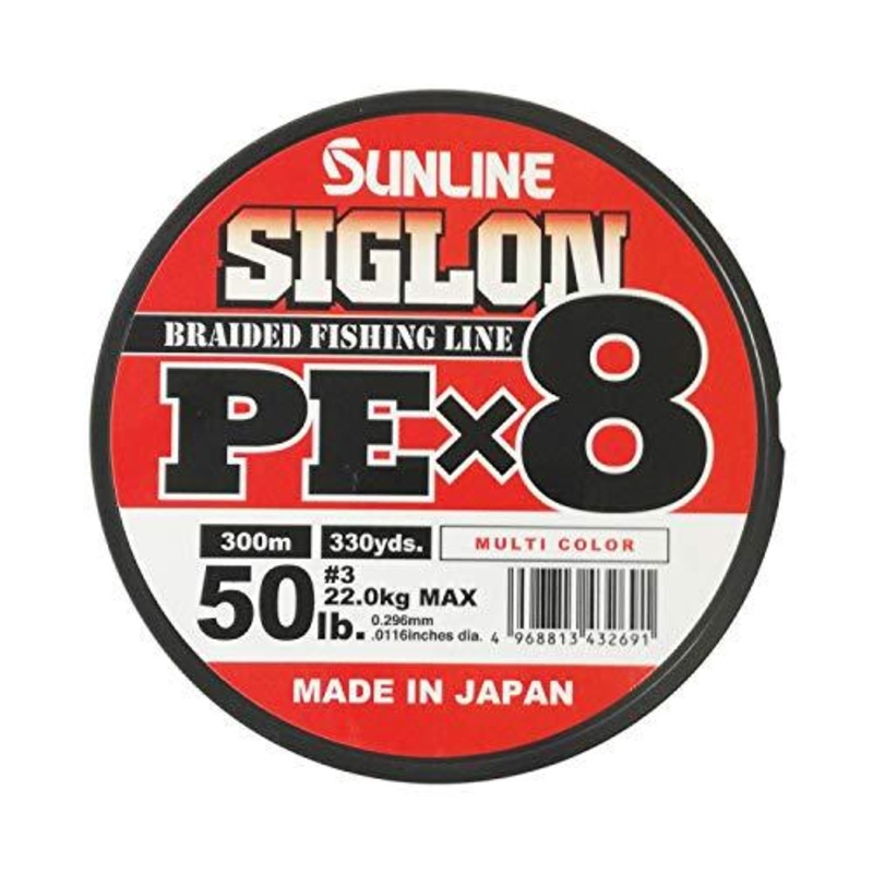 SUNLINE SIGLON PE X8 300m #3 / 50lb Multicolor PE Braid Fishing Line Condition: Brand NewJapan Domestic Model.No.: 3LB: 50Direct strength (kg) MAX: 22Length: 300mColor: Multicolor (10m x 5 colors)Material: Excellent PE lineSize: No. 3 / 50lb