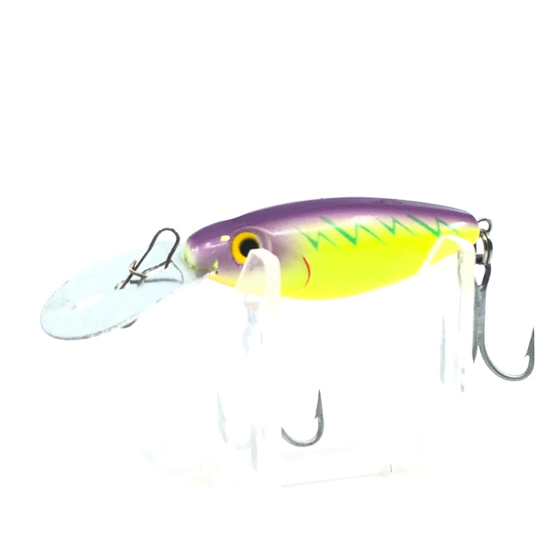 The Producers Double Downer Purple Backed Neon Shore. Great lure here that combines the newest lure designs for best visibility and a classic metal lip that provides superior diving and action. About 3″ long in great condition. Buy this amazing lure today!