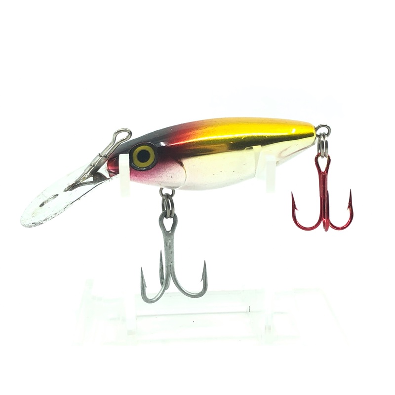 The Producers Double Downer Red and Gold Metachrome. Great lure here that combines the newest lure designs for best visibility and a classic metal lip that provides superior diving and action. About 3" long in great condition. Buy this amazing lure today!