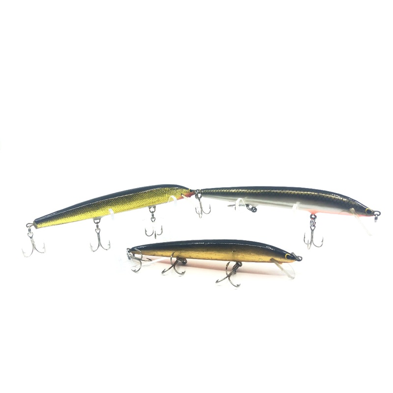 Three Crankbait combo #1. Random baits chosen out of a basket. Variable sizes, longest about 5″ long. Great for fishing.