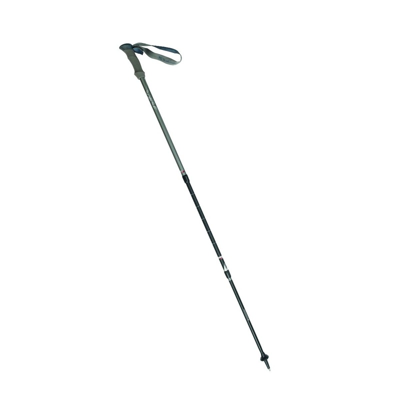 Single, ergonomic walking pole with anti-shock system and multi-position-grip handle.SPECIFICATION:6061 aircraft Aluminium for durability.3 section.Double locking twist mechanism.Multi-grip EVA handle. Tungsten carbide tips for lightweight durability. Supp