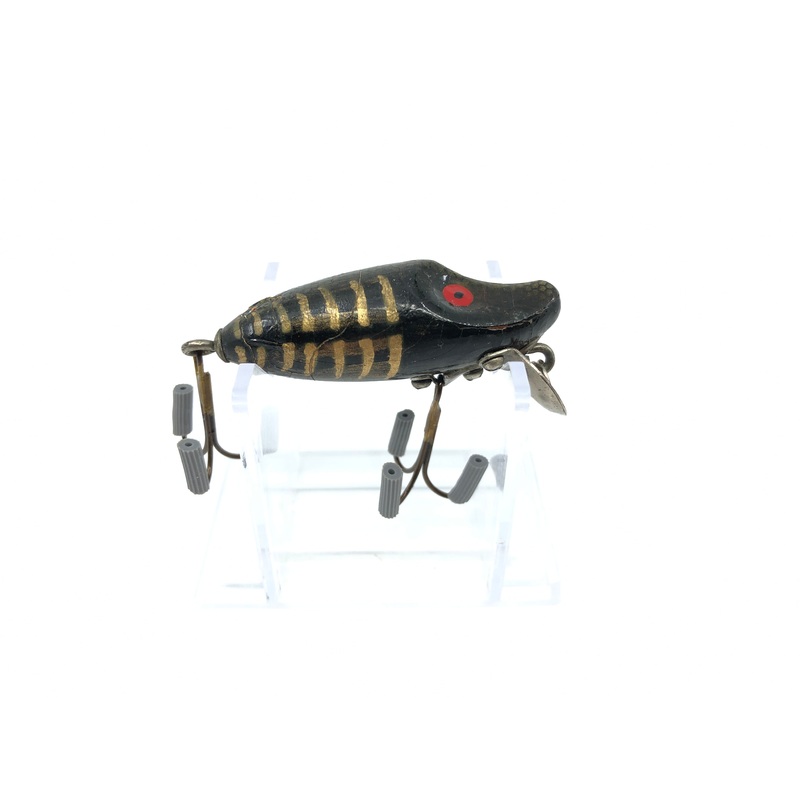 Tulsa Tackle Stunter Lure Black Shore Color Warrior. About 2 1/8" long. Used lure with some wear and it appears to be repainted. Paint coming off in some areas. May be able to take over-paint off. See photos. Certainly can be fished or displayed. Grab a de