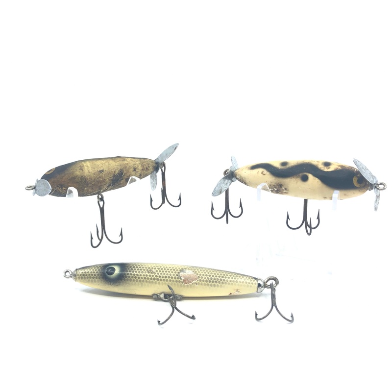 Two Warriors & a Minnow. Ranging from 3 1/4"- 4" long this is the perfect lot for the fishermen whose tried everything. In this package you get two propeller baits which have seen a lot of action and a minnow that would be perfect for pike. See photos. Cer