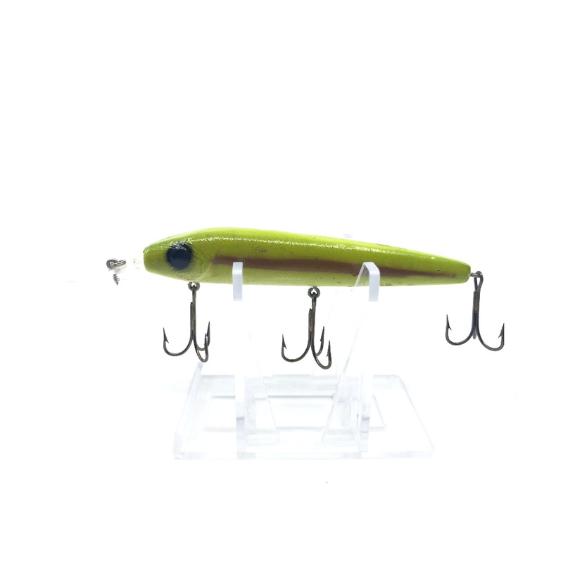 Unique Unmarked Crankbait Green and Brown Color. Lure body is about 3 1/2″ long. Used but in good condition. Good for fishing or collection.