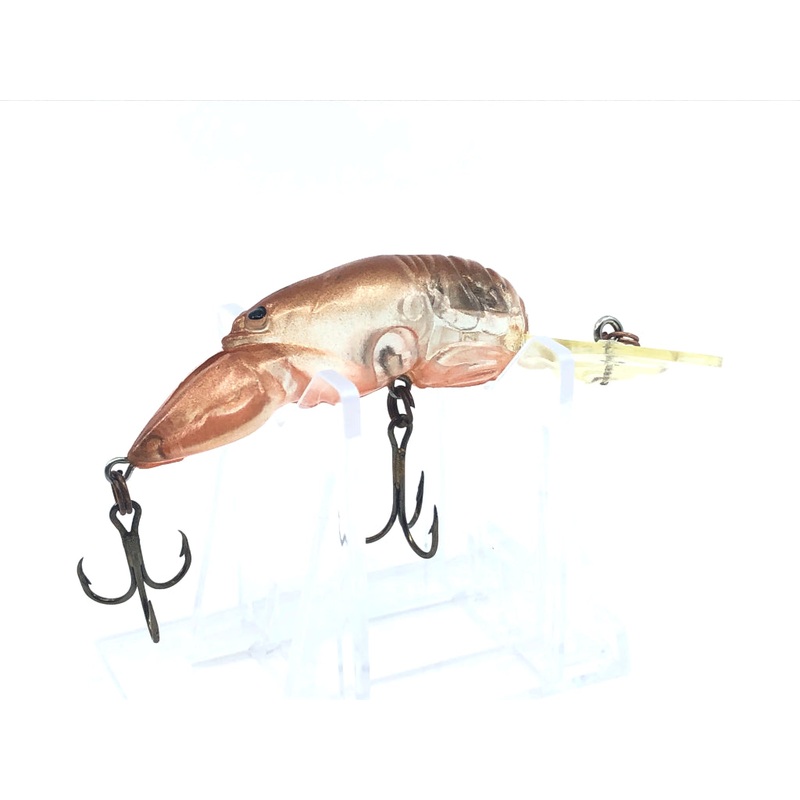 Unmarked Crawfish. At about 3 1/2" long this lure is in great condition with very little wear. This lure is unmarked and appears to be an amateur lure. The good thing is that fish don't care if it's name brand. Might be a Rebel. See photos.