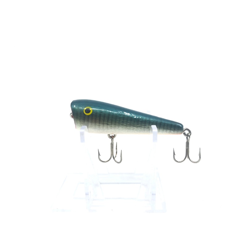 Unmarked Popper Blue and White Color. About 2 1/2" long.Used but in great condition. For fishing or collection.