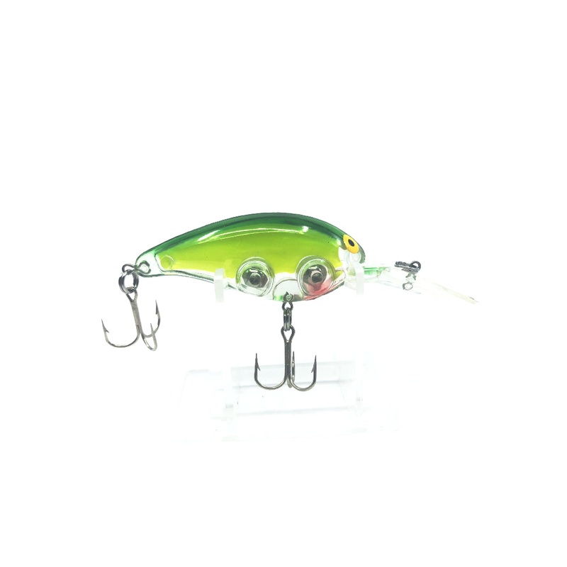 Unmarked Rattling Crainkbait Neon Green and Yellow Color. About 4″ long. Used but still in great condition and ready to fish.