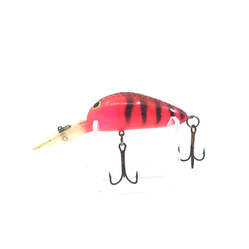 Unmarked Red Tiger Color Crankbait. Lure body is about 2 3/4″ long. Used but in good condition. Great for fishing or collection.