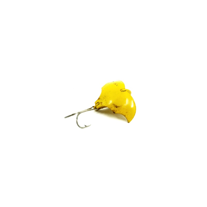 Vibra Bat Small Baby Bat, Yellow Color. Lure is about 1" long. A unique vintage lure created by Harrison Industries. Inc out of Newark New Jersey in the 1960's. An interesting design that flutters as you reel. Lure is used but in good condition with minor