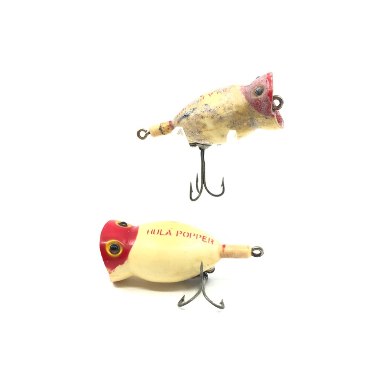 Vintage Arbogast Hula Popper Two Pack. Both of these older Hula Popper are about 2 1/2″ long. Ok condition they have plenty of marks but nothing more then the usual wear. Great set of lures to fish or collect. See photos.