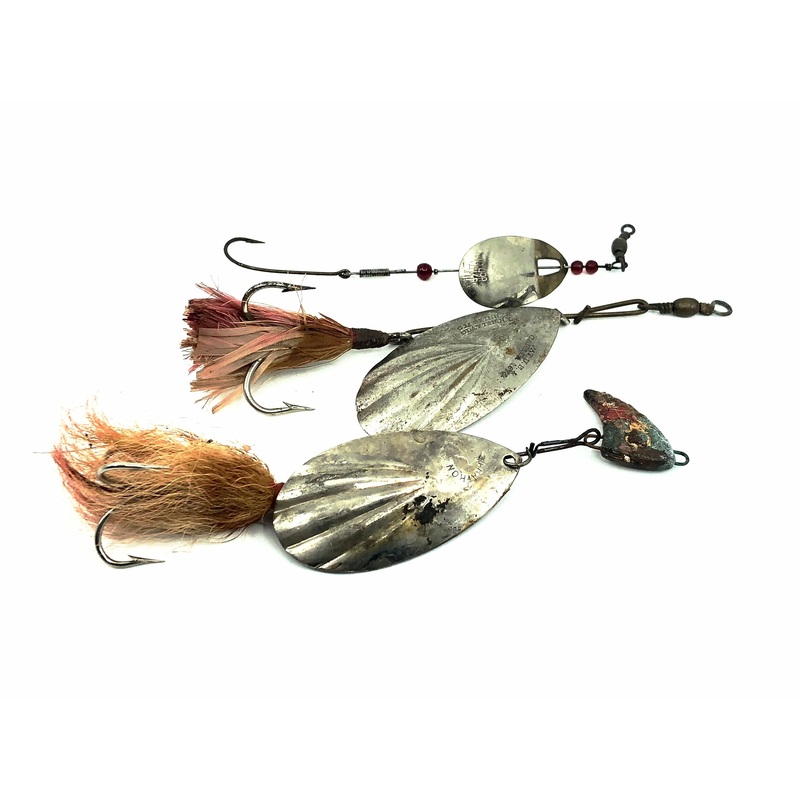 Vintage Fluted Spinner Trio. This pack includes three vintage spinners: 1 , 10,000 Lakes Spinner, 1, Marathon Weighted Head Spinner and 1, GM Skinner #8. All lures are used with a good amount of wear. See photos. Fish or collect.