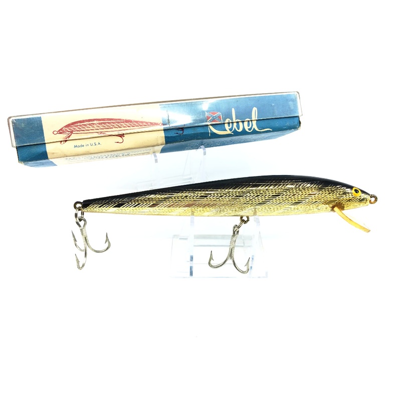 Vintage Rebel 7" Minnow with Flag Box. Box in ok shape with clouding to plastic lid. Lure in nice shape, see photos. Not sure if correct box or not.See all of ourRebel lures for sale here.