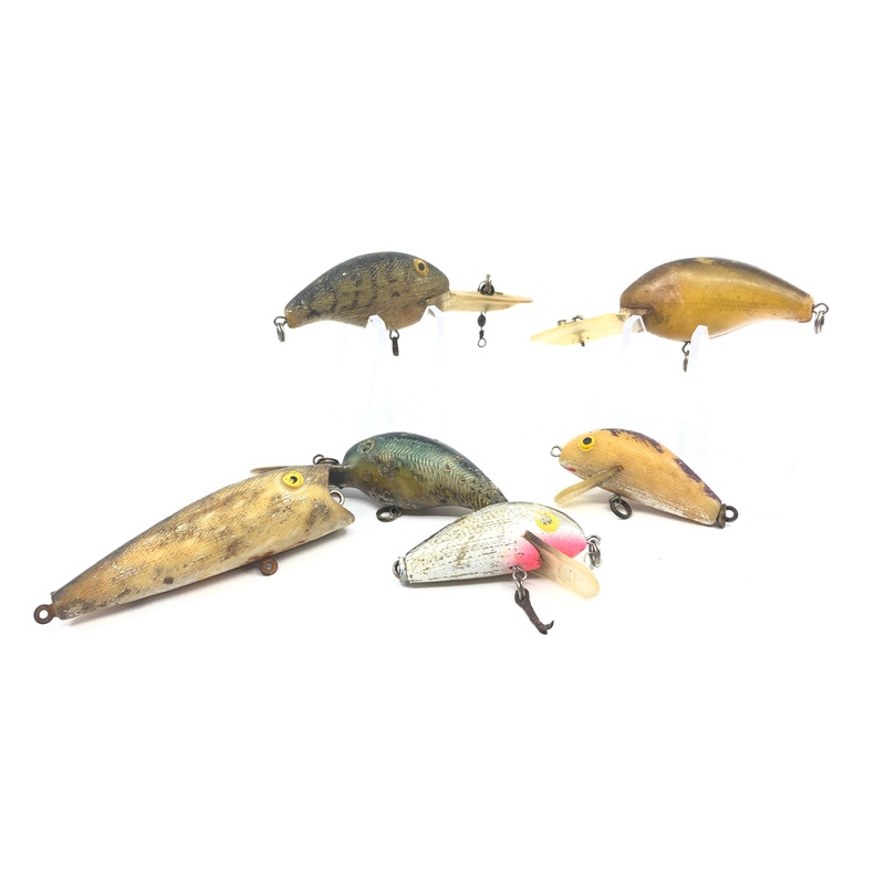 Vintage Rebel Warrior Pack. This pack includes 6 vintage Rebel ranging from poppers to Wee R’s. Lures are in rough condition with missing hooks and a good amount of wear. Perfect to fix up and fish or make a warrior display. See photos.