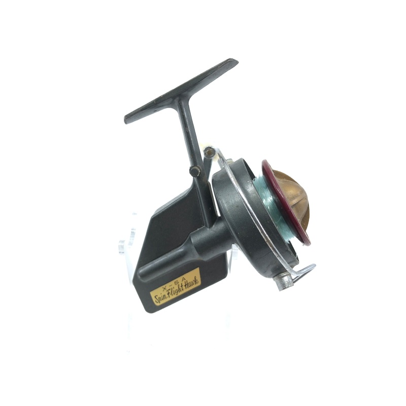 Vintage Spin Flight Hawk X-5A Spinning Reel. Early spinning reel here. Used but in good overall condition. Cranks a little hard, maybe can be tuned up and fixed, not sure. Still a nice piece to add to your collection. A tough miscellaneous reel to add. See