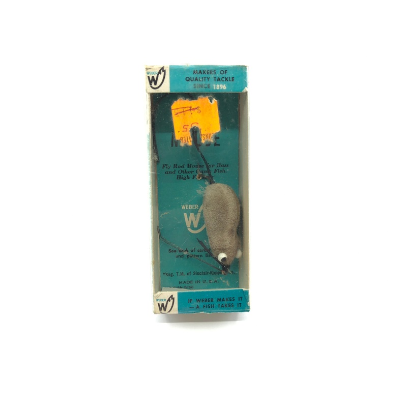 Weber Weedless Spin Mouse Gray Color New in Box Old Stock 1/10 oz Tough Size. Don't believe this box has ever been opened. Tougher small size, mouse body about 1 1/2" long not including tail. Lure in new condition. Box has some minor wear. Great combo. Har