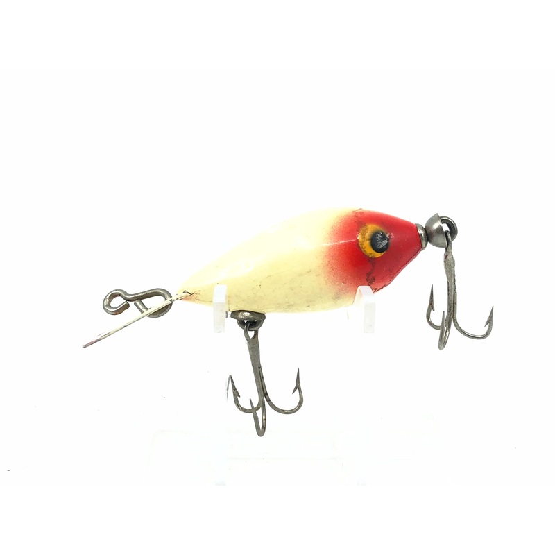 Whopper Stopper Back Runner, Red Head/White Color. About 2 3/4" long including the lip. Used vintage lure with some wear and marks but overall good condition. Uncommon Whopper Stopper bait. Fish or collect this vintage classic bait. See photos.Hard to find