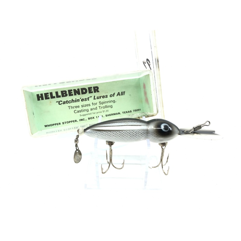Whopper Stopper Hellbender 919 Striper Color New with Box. 4 1/2" long including lip. Great new old stock here. Always have people looking for these to fish and collect. Appears unused in box and in great shape, see photos. Comes with box paper insert. Box